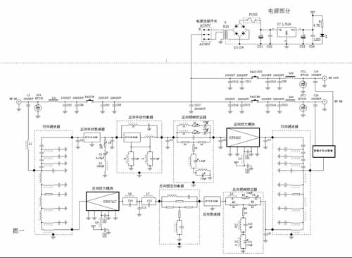 众所周知随着信息产业的不断发展,对信息传输通道的要求越来越高,HFC网络的带宽以及普及性有着它得天独厚的优越性,这是时下其他网络暂时不具有的。加上HFC光纤主干网的建设以及光节点的不断延伸,都为有线电视网络的发展带来了许多机会。当然要在有线电视网上实现数据、语音、图象等多媒体通讯,首先要将现有的单向广播式网络升级为能够实现双向传输的智能化网络。为了让有线电视器材生产厂家、以及广大用户更好的了解双向放大器、同时设计、生产出合格的、有极高性价比的有线电视双向放大器,本文将介绍一款采用“科健有线网络公司”生产的正向和反向放大模块设计的一款有线电视双向放大器。该款放大器电路简洁、可靠性高、产品一致性好;采用高频双面线路板、SMT贴片工艺;具有优良的带内平坦度与反射损耗指标。而且无源平台支持1000MHz带宽,同一张PCB兼容550MHz、750MHz、860MHz、1GHz以及集中AC60V供电和独立AC220V供电产品,同时具有较低的生产成本,利于广大有线电视器材厂家的批量生产、工艺管理以及市场竞争。